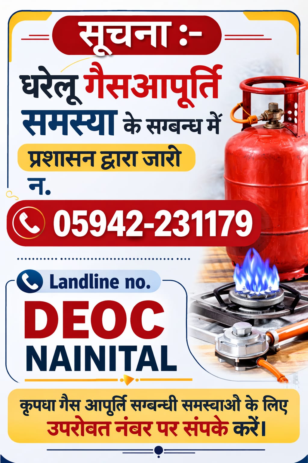 हल्द्वानी – घरेलू गैस सिलेंडरों की कालाबाजारी, जमाखोरी और व्यावसायिक उपयोग की मिल रही शिकायतों को गंभीरता से लेते हुए ललित मोहन रयाल के निर्देश पर जिला प्रशासन ने सख्त कदम उठाए हैं। जिलाधिकारी ने स्पष्ट किया है कि घरेलू गैस सिलेंडरों का कमर्शियल उपयोग किसी भी स्थिति में स्वीकार नहीं किया जाएगा और नियमों का उल्लंघन करने वालों के खिलाफ सख्त कानूनी कार्रवाई की जाएगी।
