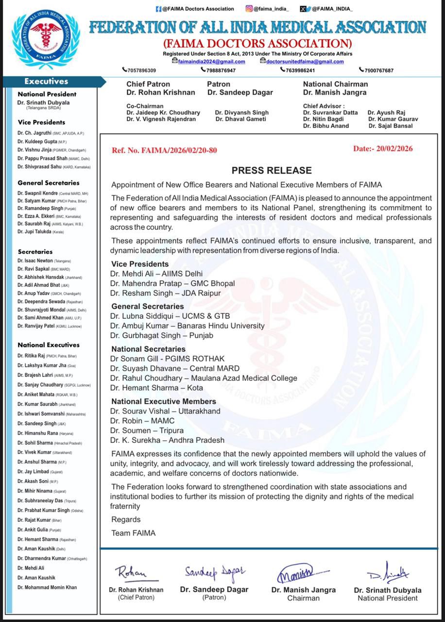 हल्द्वानी/लालकुआं – उत्तराखंड के लिए गर्व का विषय है कि राज्य के युवा चिकित्सक डॉ. सौरव विशाल को Federation of All India Medical Association (FAIMA) की राष्ट्रीय कार्यकारिणी में उत्तराखंड से राष्ट्रीय कार्यकारिणी सदस्य के रूप में नियुक्त किया गया है।