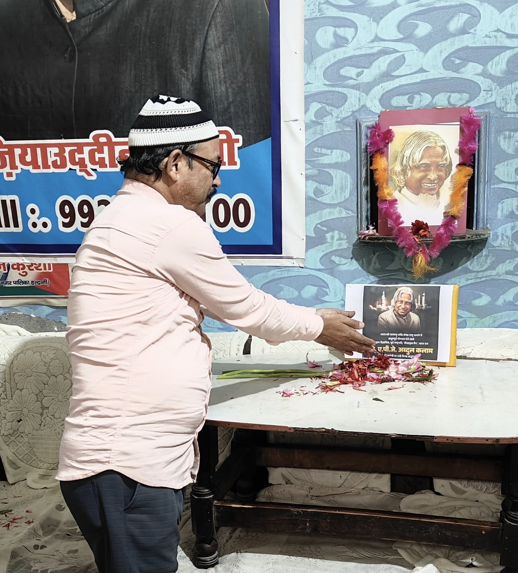 इस अवसर पर हल्द्वानी विधानसभा क्षेत्र के बूथ संख्या 131, इंदिरा नगर (वार्ड नंबर 32) में जियाउद्दीन कुरैशी, जिला संयोजक आत्मनिर्भर भारत नैनीताल के कार्यालय पर डॉ. कलाम को पुष्पांजलि अर्पित कर श्रद्धांजलि दी गई।