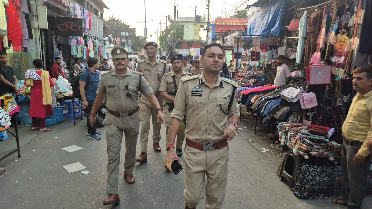 नैनीताल – आगामी दीपावली पर्व को शांति, सुरक्षा और सौहार्दपूर्ण माहौल में मनाए जाने के उद्देश्य से मंगलवार सायं वरिष्ठ पुलिस अधीक्षक नैनीताल प्रहलाद नारायण मीणा (IPS) ने स्वयं मोर्चा संभालते हुए हल्द्वानी शहर के प्रमुख बाजारों में पैदल फ्लैग मार्च एवं औचक निरीक्षण किया।