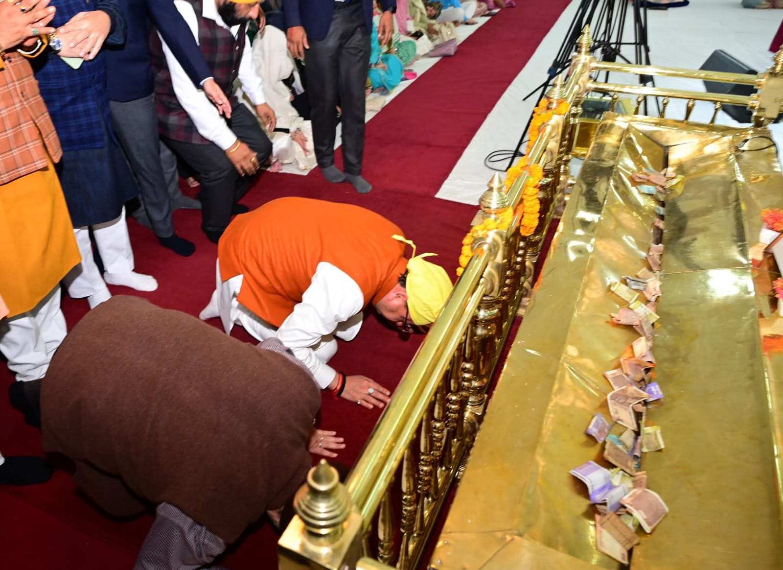 देहरादून – मुख्यमंत्री पुष्कर सिंह धामी ने रविवार को श्री गुरु तेग बहादुर साहिब जी के 350वें बलिदान दिवस पर रेसकोर्स स्थित गुरुद्वारा में आयोजित कार्यक्रम में शिरकत की। उन्होंने गुरुद्वारा साहिब पहुंचकर मत्था टेका, शबद-कीर्तन सुना और संगत के बीच बैठकर लंगर सेवा में भी हिस्सा लिया।