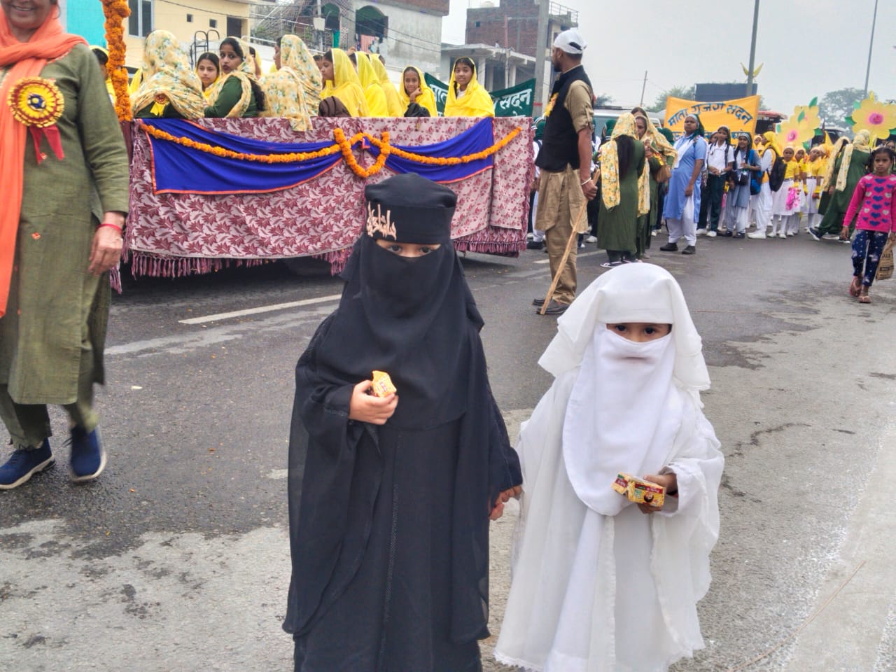 Rudrapur:-हिजाब पहने दो मासूम बच्चियों ने नगर कीर्तन में शामिल संगत का भव्य स्वागत